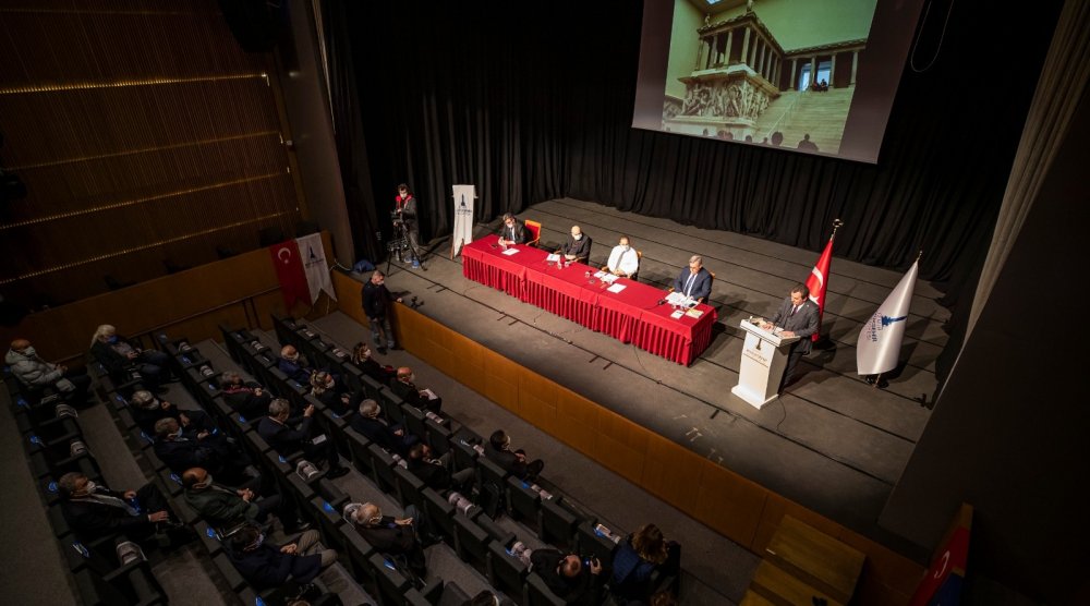 İzmir Büyükşehir Belediye Başkanı Tunç Soyer Bergama Kültür Merkezi'nde 1800’lü yıllarda parçaları Almanya’ya kaçırılan Zeus Sunağı’nın anavatanı Bergama’ya getirilmesi için yol haritasını belirlemek üzere geniş katılımlı bir toplantı yaptı.