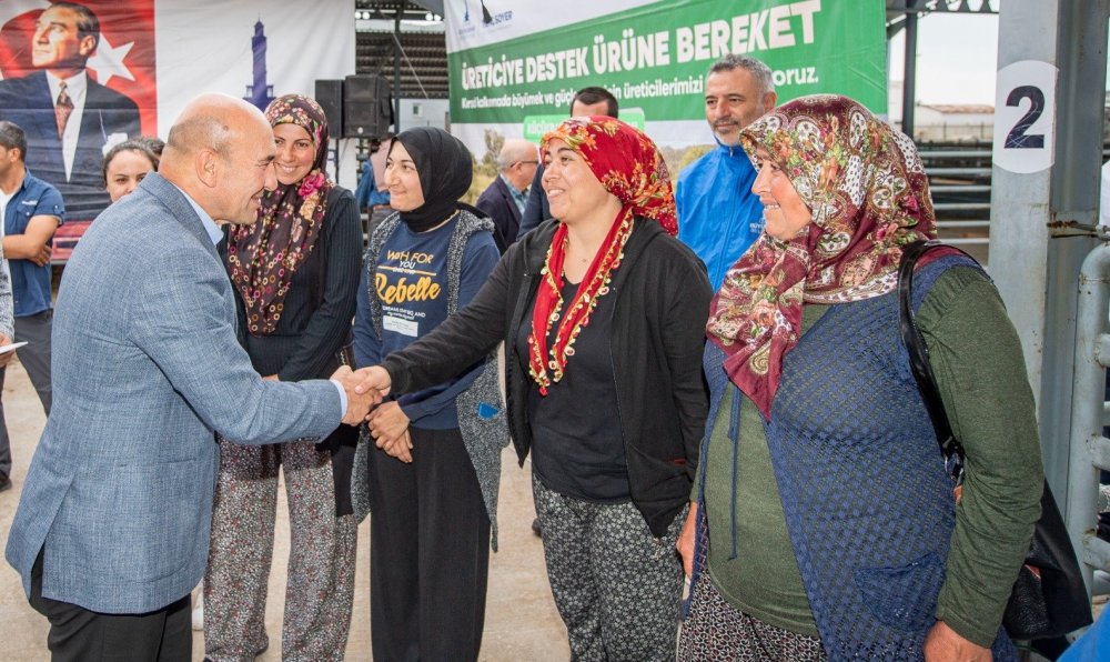 “Başka Bir Tarım Mümkün” vizyonu doğrultusunda, yerel üreticiye ve kırsala yönelik projeleriyle tüm Türkiye’ye örnek bir kalkınma modeline öncülük eden İzmir Büyükşehir Belediyesi, Bergama'da 30'u kadın olmak üzere 104 üreticiye 385 küçükbaş hayvan dağıttı.