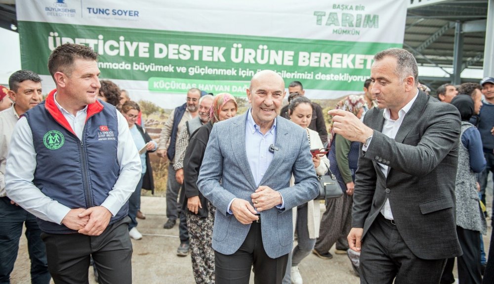 Törende konuşan İzmir Büyükşehir Belediye Başkanı Tunç Soyer, “Biz niye tarımla uğraşıyoruz? Mustafa Kemal Atatürk, 'Köylü milletin efendisi' demiş. Çünkü üretmek yoksa, köylü yoksa, bu millet yok, bu memleket yok. Biz ürettikçe, bu bereketli topraklarda üretime devam ettikçe bir geleceğimiz var. Uzunca bir zamandır, belki 50 yıldır bu sektör sürekli kan kaybediyor. Sürekli güç kaybeden, üreticinin yoksullaştığı, dışarıya muhtaç olmaya başladığımız, ithalatın giderek daha çok artığı bir ülkeye döndü Türkiye. Bizim çocukluğumuzda ülkemizde kendi kendine yeten bir ekonomi olmanın gururu vardı. Biz bununla mutlu olurduk. Yerli malı haftaları yapılırdı, yerli hayvan ırkları, yerli tohumlarımız vardı. Hepsinden vazgeçildi, hepsi geride kaldı, yok edildi. Bir avuç büyük sanayici, tarımda ithalattan kazanan sanayici kazançlarını büyütsünler diye küçük üreticinin yok olmasına seyirci kalındı. Dışarıya muhtaç olmasına, yoksullaşmasına seyirci kalındı. Onun için göreve başladığımız günden beri birinci öncelik, en öncelikli işimiz tarım oldu. O nedenle 'başka bir tarım mümkün' dedik. Çünkü planlama yapılması lazım. Şu anda tarım politikalarında planlama yok. Üretici kendi kaderiyle baş başa, günü kurtarma telaşında. Geleceğinden kaygılı... Bu bir kader değil ve değişebilir. O yüzden biz İzmir Büyükşehir Belediyesi olarak küçük üreticimizin yanında olmaya devam edeceğiz” dedi.