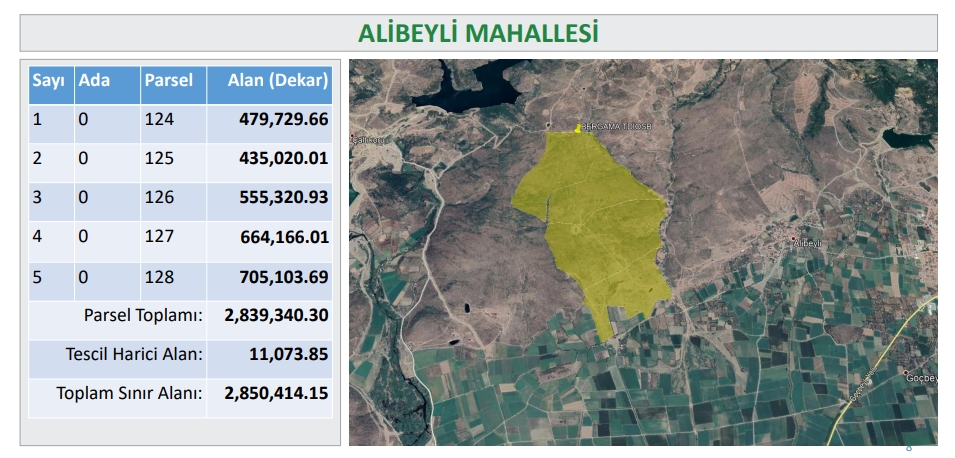 Proje kapsamında daha önce mera vasfında olan araziler mera vasfından çıkartılırken İYİ Partili Bergama Belediyesi Meclis Üyesi Olgu Altuğ ise söz konusu projeyi yargıya taşımak için hazırlık yaptıklarını dile getirdi. Bölgedeki arazilerin mera vasfından çıkarıldığını belirten Altuğ, vatandaşın bedava tapu ile kandırıldığını iddia etti. Meranın köylüden alınarak büyük sermaye sahiplerine verileceğini söyledi. Altuğ; "Köylümüz kendi topraklarında dışarıdan gelen büyük sermaye sahiplerinin işçisi olarak çalıştırılmak istenmektedir. Buna asla göz yumamayız" dedi.
