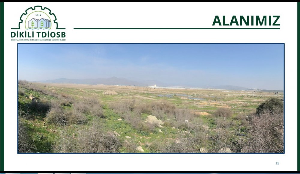 3 milyon metrekarelik alan üzerine kurulan Dikili TDSOSB'nin proje sahasında yaklaşık 1 milyon 800 bin metrekarelik modern teknolojik sera alanı ve ihtisas sanayi tesisleri için 300 bin metrekarelik parsel ayrıldı.