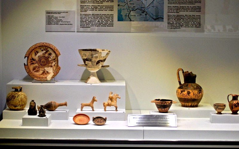 Pitane'de gün ışığına çıkan eserler genellikle M.Ö.(625,500) tarihlerinde üretilmişlerdir. Chios türü Oryantalizan vazolarla taşra ürünü eserler büyük önem taşırlar.