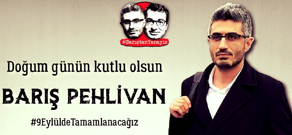 Gazeteciler 'İyi ki doğdun Barış Pehlivan' yazılı pankart ile Pehlivan'a seslendi.
