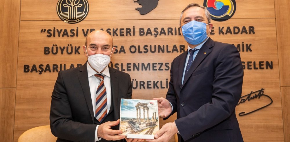 Bergama Kültür ve Sanat Vakfı'nı (BERKSAV) ziyaret eden Başkan Soyer burada Vakıf Başkanı Gökhan Gönlügür ve vakıf yöneticileri ile görüştü.