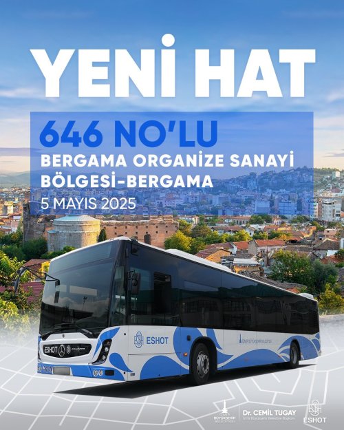 İzmir Büyükşehir Belediyesi ESHOT Genel Müdürlüğü, 5 Mayıs 2025 itibarıyla hizmete giren 646 numaralı Bergama Organize Sanayi Bölgesi–Bergama hattını İzmirlilerin kullanımına sundu.
