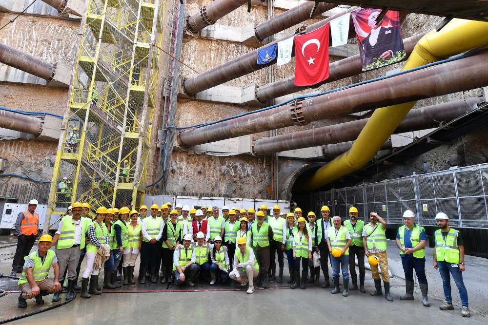 İzmir Büyükşehir Belediye Başkanı Tunç Soyer, belediye başkanları, meclis üyeleri ve muhtarlarla yerin 30 metre altına 155 basamaklı merdivenden inerek çalışmaları yerinde inceledi. 600 metre ilerlemiş tünele giren Soyer, “Türkiye’nin gündemine girmesi gereken bir hikaye bu kadar savaş yaşanırken insanlar bu kadar karamsarlık yaşarken varlığıyla umut veren bir yer. Birçok yerde yatırım durmuşken burada tıkır tıkır işleyen ve belki de Türkiye’nin en büyük yatırımlarından biri olan bu proje hızla devam ediyor. Mühendisinden işçisine kontrolöründen emekçisine hepsiyle iftihar ediyorum. Altı ay içinde işin yüzde 50’si bitecek. Yani işin daha hızlı ilerleyeceği bir döneme gir eceğiz, sonrası çok daha kolay olacak” dedi.
