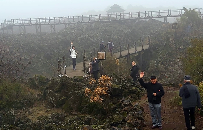 Yürüyüş parkuruna vardığımızda hava açar diye beklediğimiz sis, yine açılmadı. Daha önce güneşli bir günde ziyaret ettiğim bu yer, benim için bu sisli havada gezmek egzotik olacak ama ya dostlarım için nasıl olur diye de düşünüyorum. Sisli bir havada 1,5 kilometre hiçbir şey görmeden yürümek sıkıcı. Allahtan macerayı da seven dostlarım "durmak yok devam" dediler. Arkadan gelenleri de sürüklediler. İlk tahta köprüye gelince herkes neşelendiler. Sisli havanın kasvetli halini unutup "böylesi de daha hoşmuş" demeye ve birbirlerinin fotoğraflarını çekmeye başladılar.