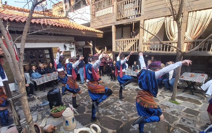 Kula Folklor Derneği Folklor grubu, bizi kapı önünde karşıladı. Heyecanla, hem şarkılarını söylediler hem de Ege yöresi oyunlarını coşkuyla sundular. Kula için güzel bir sunum oldu. Hele Kerimoğlu Zeybeği oynanınca ben de çoştum. Bu tarihi mekânda çaylarımızı kahvelerimizi keyifle içtik. Zabunlar Konağına uğradık.