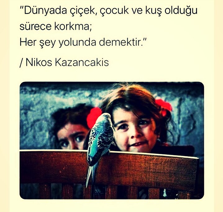 "Dünyada, çiçek, çocuk, kuş" olduğu
